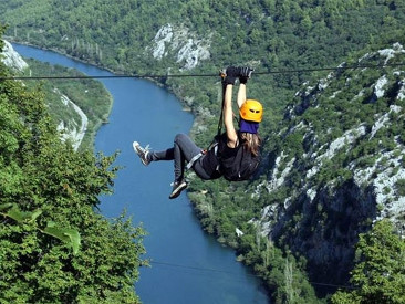 Zipline je adrenalinska zabava gdje se gosti spuštaju kroz kanjon niz čelično uže, osigurani pojasom. Obližnje zipline lokacije su u Omišu i Tučepima.