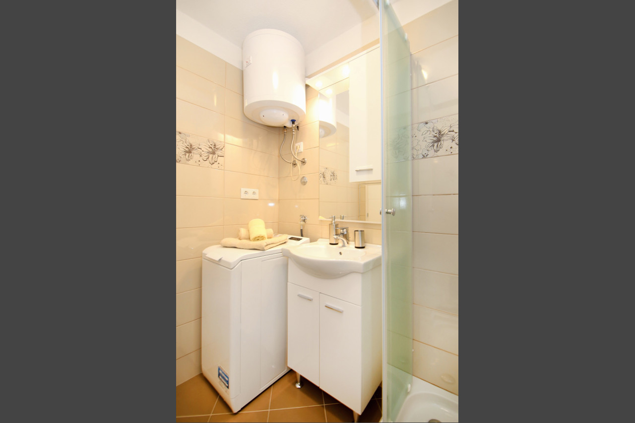 Moderna kuhinja, blagovaonica, dnevna soba i kupaonica se nalaze u prizemlju kuće. Kuhinja je opremljena svime što možete zatrebati tijekom vašeg odmora (pribor za jelo, hladnjak, pećnica, aparat za kavu, mikrovalna pećnica, perilica posuđa). U kupaonici se nalazi tuš i perilica rublja za vašu osobnu upotrebu bez naplate.