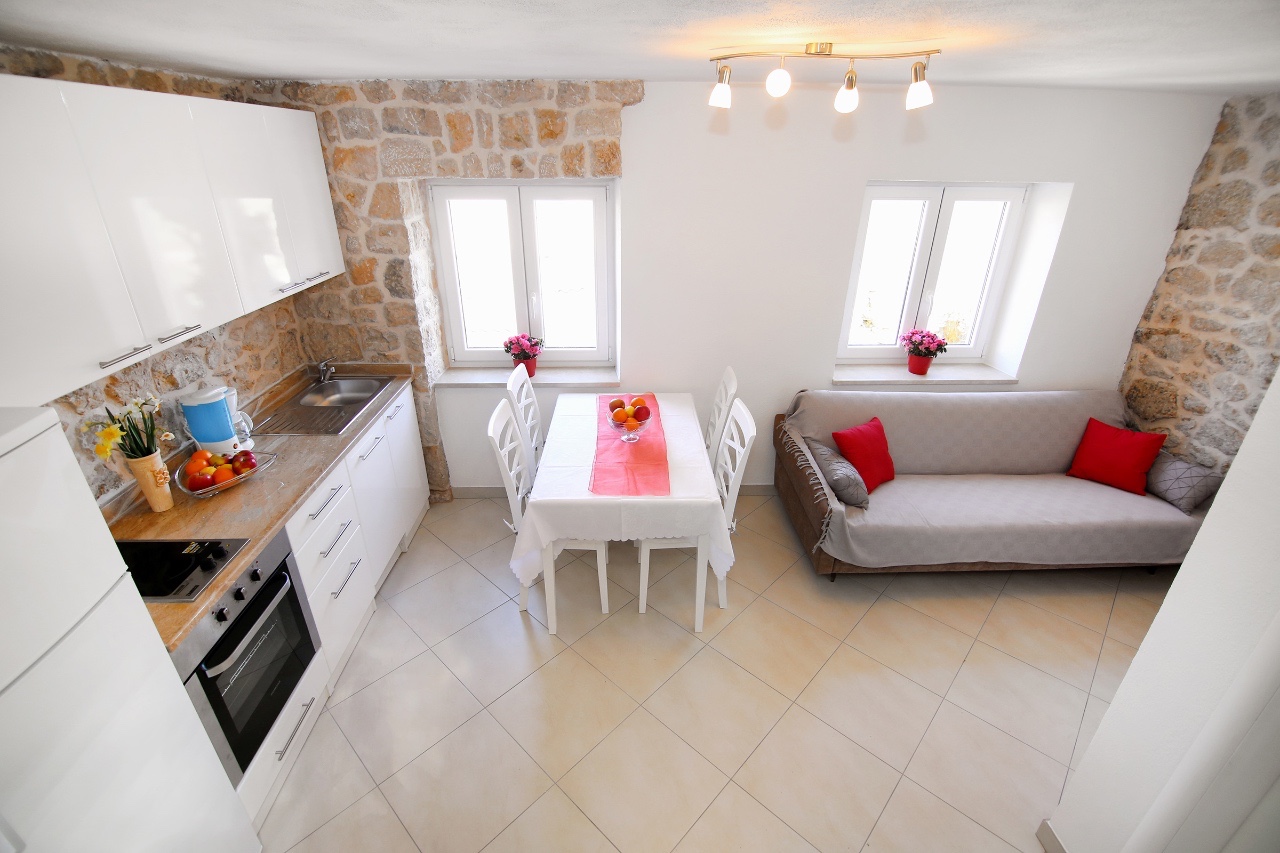 Stara kamena kuća sagrađena 1854. godine te potpuno renovirana 2015. godine. Kuća se sastoji od prizemlja i prvog kata. Ispred kuće je veliko dvorište i bazen.
